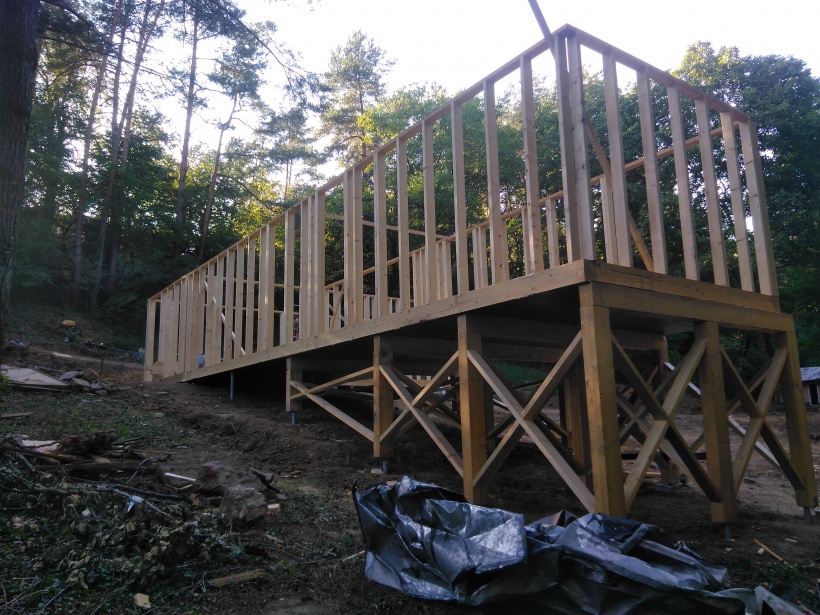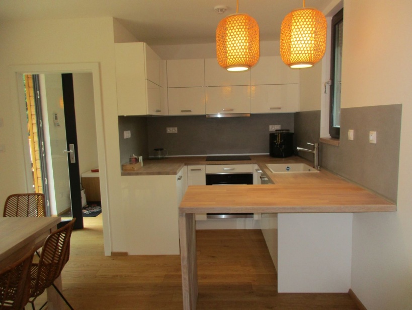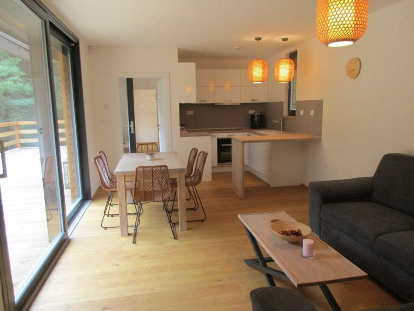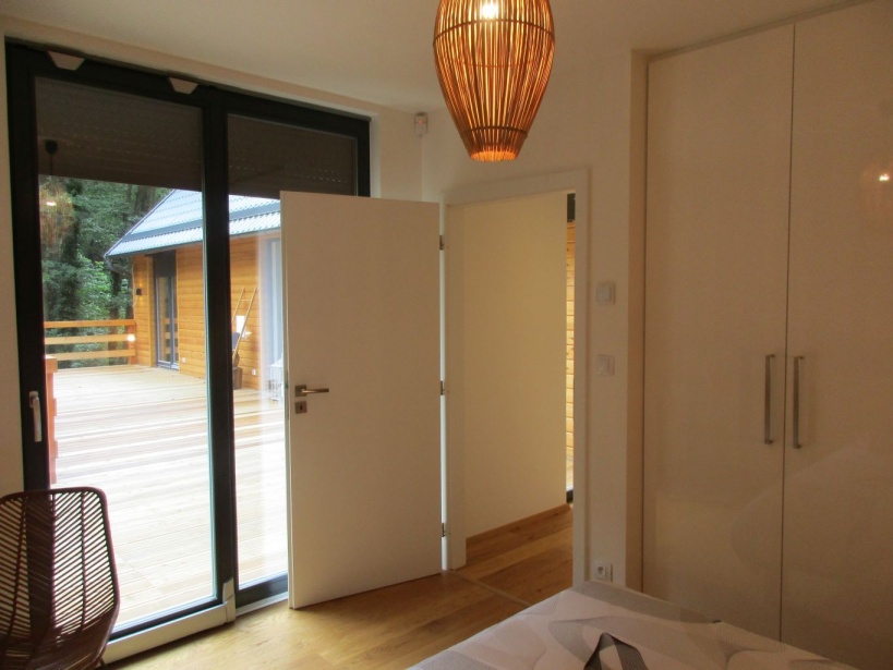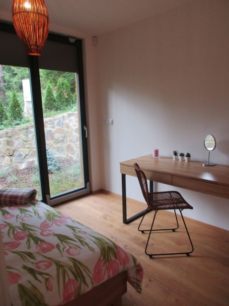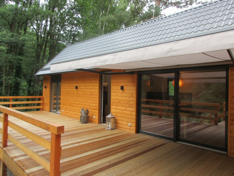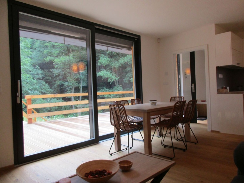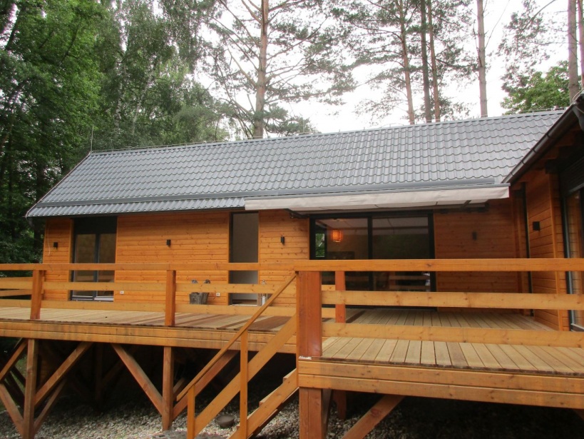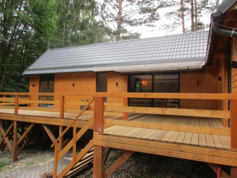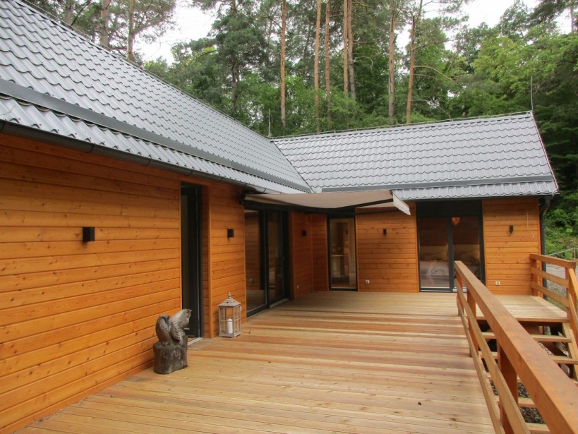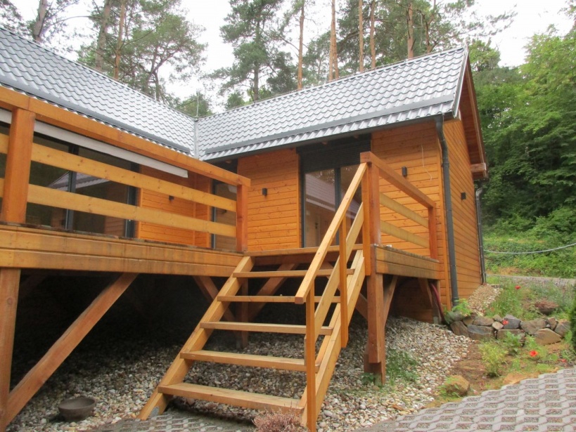 Modulárna zostava Design L, tvorená modulmy o veľkosti 12 x 4,2 metrov a 10 x 4,2 metrov. Zostava je riešená ako chatový objekt a je doplnená o sedlovú strechu. Celý objekt je obložený rhombusom z červeného smreku. Súčasťou L tvaru je tiež terasa, která doplní celý dom a dodá mu jeho charakter. Zostava aj s terasou je položená na zemných vrútoch. Práca prebiehala na mieste, z dôvodu zlé prístupného terénu.