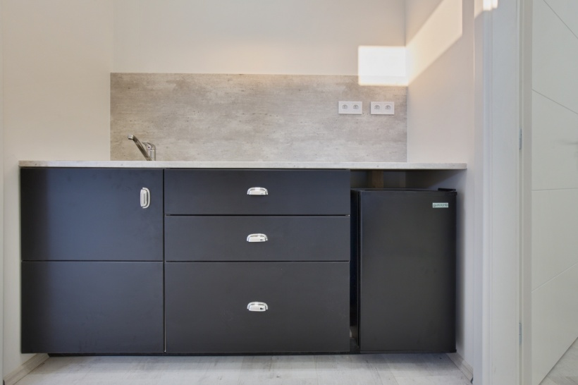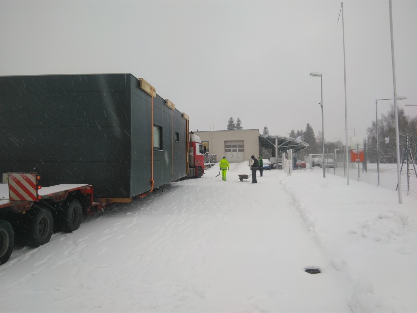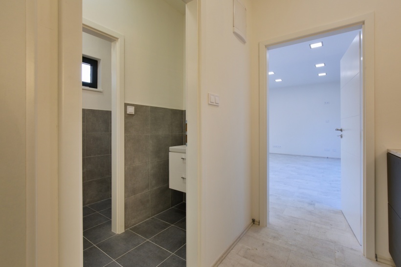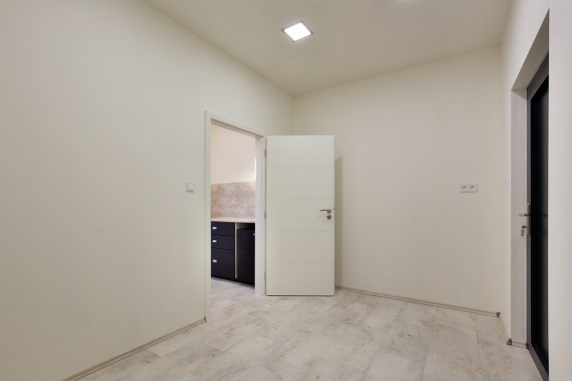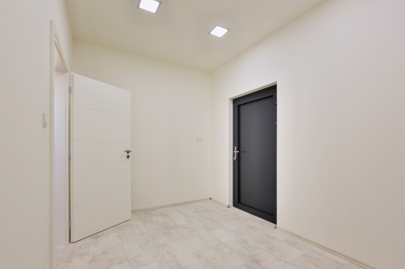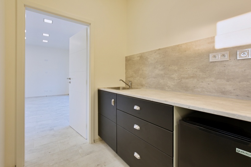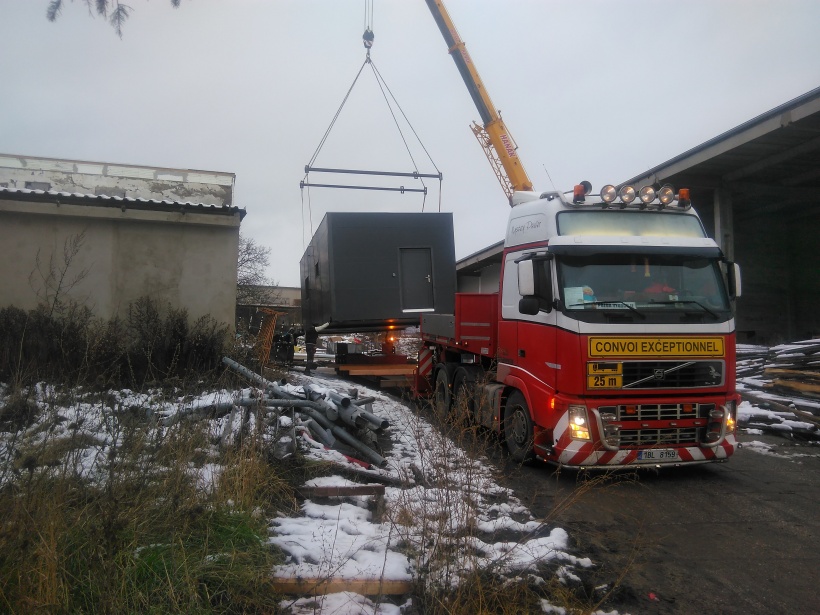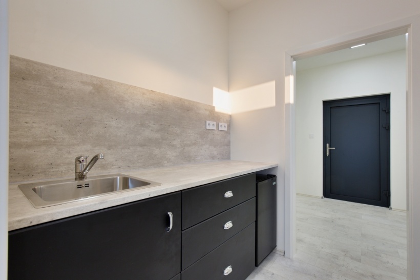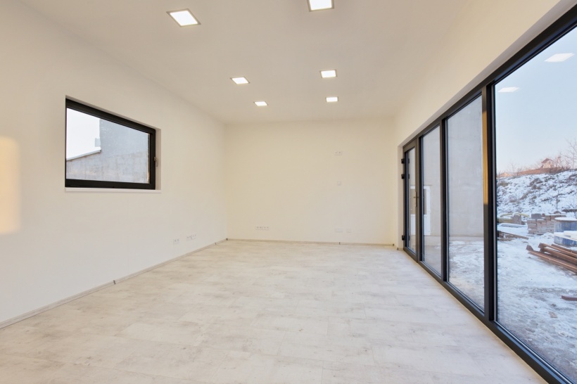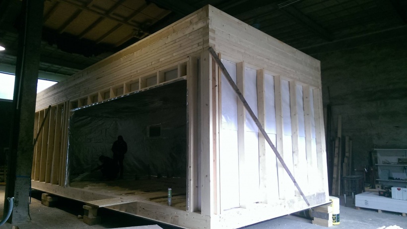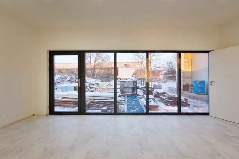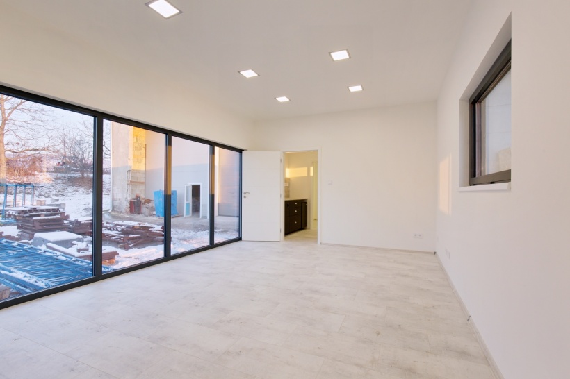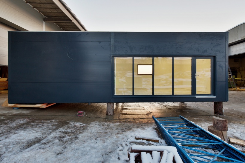 Interiér modulovej kancelárie pre ŠKODA Plus. Vnútorné dispozície sú riešené na prianie zákazníka. Videá z pokládok našich domov môžete nájsť na našom Youtube channelu Hutchhouse.