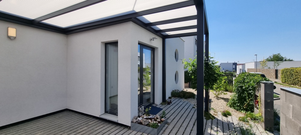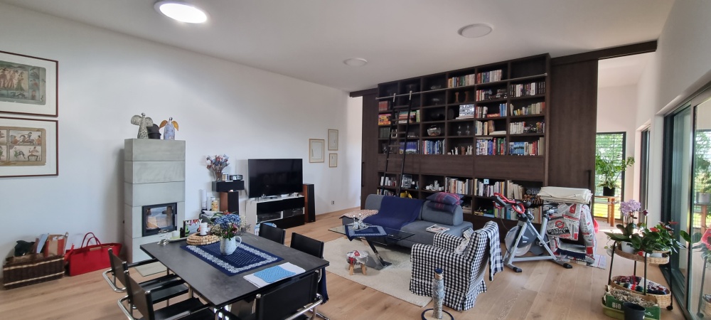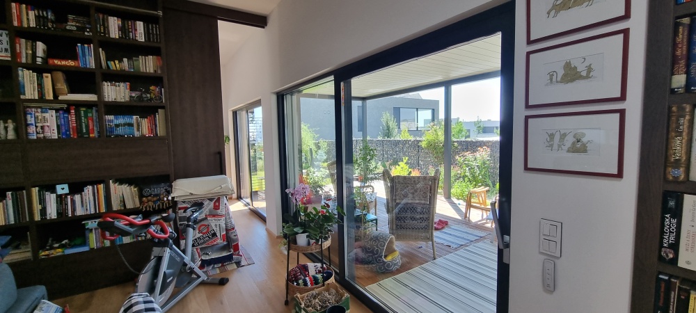 Atipická panelová zostava, ktorá vytvorila tento skvostný výtvor. Ide celkovo o 152 m2, ale nakoľko miestnosti majú vyšší strop, predovšetkým obývací priestor, tak máte pocit väčšej veľkosti. Stavba bola zostavovaná komplet na mieste realizácie. Dom je doplnený o podlahové vykurovanie pomocou uhlíkových fólií, vonkajšie elektrické žalúzie, nerezový komín a kúpeľne priamo podľa priania zákazníka. Videá z pokládok našich domov môžete nájsť na našom Youtube channelu Hutchhouse.